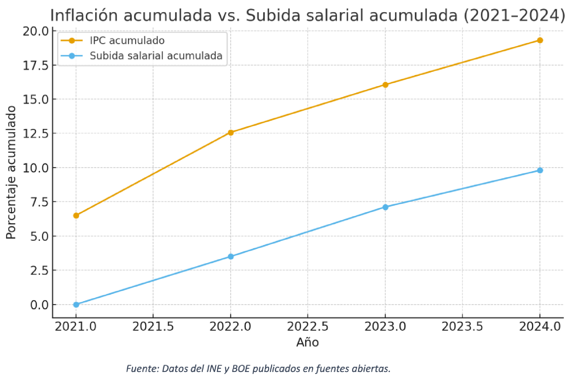 Desde la llegada al poder del actual gobierno en 2018, la inflación acumulada ha superado el 21%, mientras que nuestras retribuciones no han aumentado en paralelo.