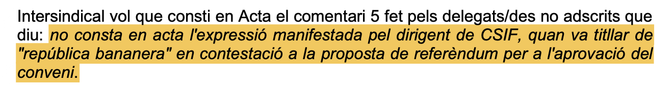 Resulta extraño a la par que contradictorio calificar de “república bananera” a la propuesta de realizar un referéndum para la aprobación del nuevo convenio, para instantes después votar a favor. Por lo que las palabras del Sr. Zambrano tratan de engañar y manipular a la plantilla.