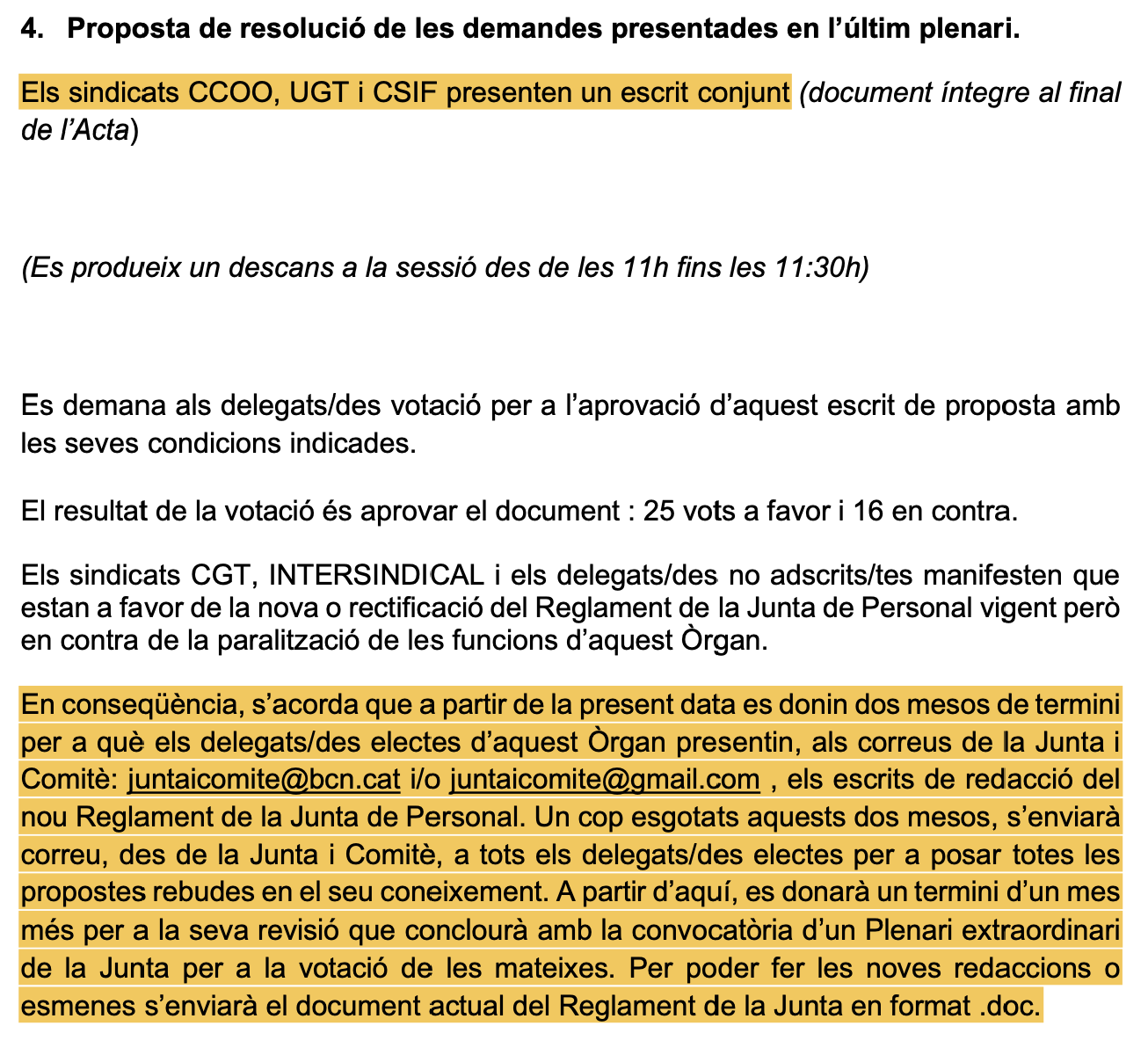 SOBRE LA EXTRAÑA INTENCIÓN DE ÚLTIMA HORA DE CONVOCAR LA JUNTA DE PERSONAL Y SOMETER A REFERÉNDUM LAS PROPUESTAS