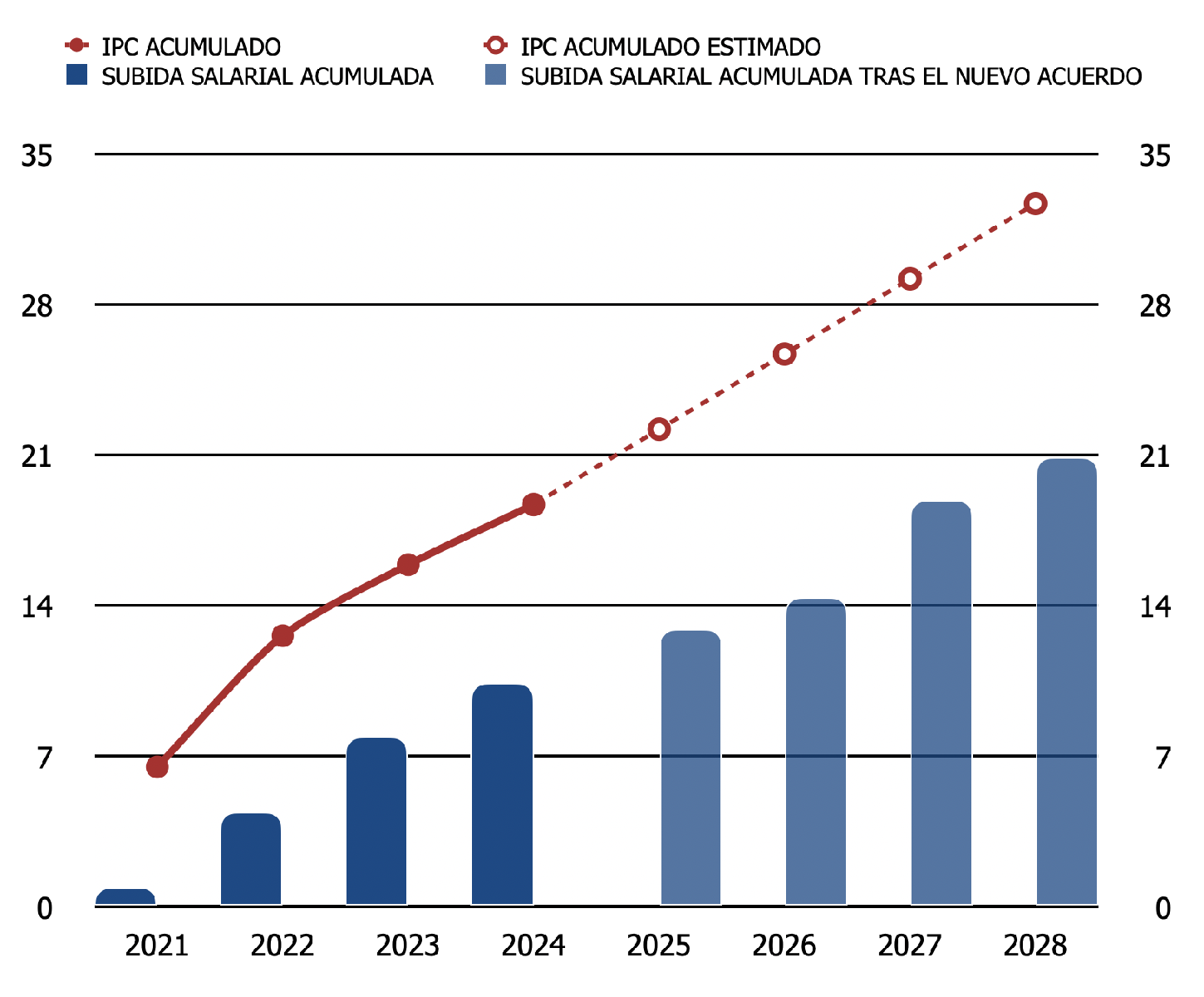 La propuesta del 11% no es una mejora: ES UNA PÉRDIDA ENCUBIERTA, una operación cosmética destinada a generar titulares, no a proteger el poder adquisitivo de quienes hacemos funcionar este país, ya que al finalizar dicho acuerdo, con una subida anual estimada del IPC en 2028 tendríamos una pérdida de poder adquisitivo de un 12%.